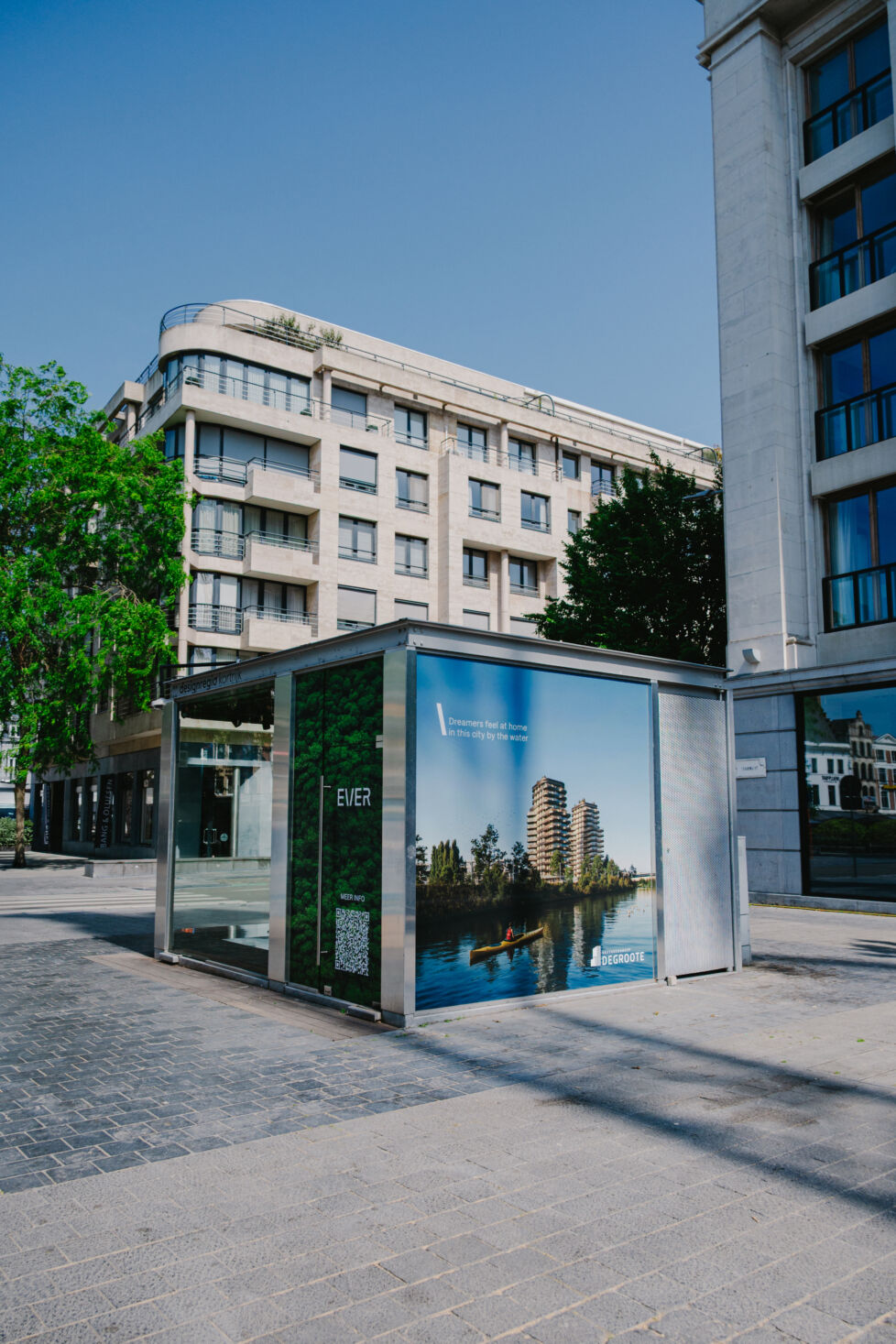 EVER is een toekomstgericht stadsontwikkelingsproject op de voormalige Blekerijsite in Kortrijk. Wat vandaag nog een braakliggend terrein is, wordt binnenkort een bruisende en groene woonwijk. De installatie is een creatie van Nanopixel, die technologie inzet om beleving tastbaar te maken en MOQO, die de identiteit van het project vormgaf. In samenwerking met Vastgoedgroep Degroote bouwen zij niet alleen aan een woonproject, maar aan een gedeelde visie op het Kortrijk van morgen: duurzaam en doordacht.